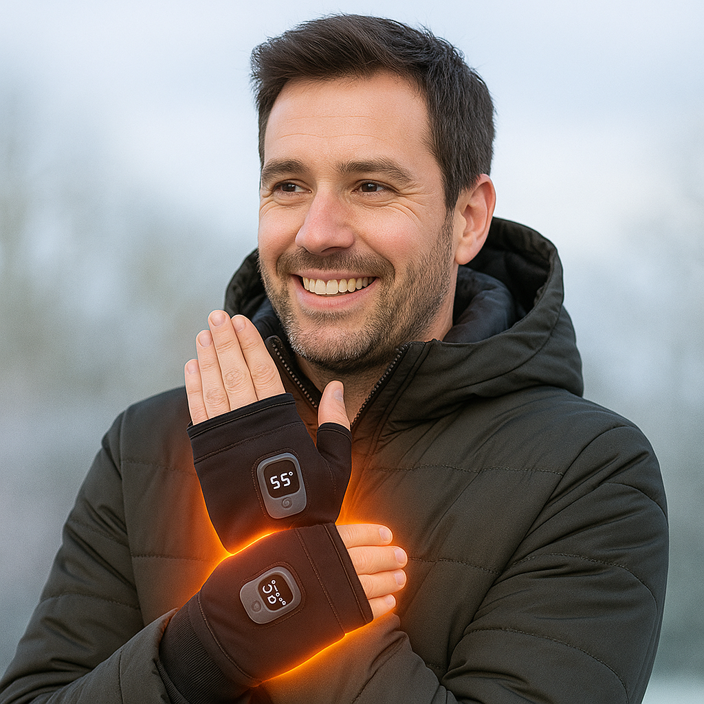 • "I bought these for doing outdoor chores and walking my dog, and they’ve exceeded every expectation. The heat feels instant and evenly spread, and the fingerless design means I can still handle my phone or leash without removing them. They’re comfortable, practical, and the quick charging makes it so easy to keep them ready every day."